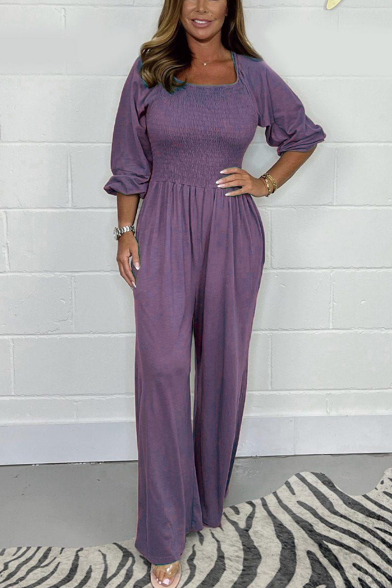 Cette combinaison à manches longues et taille froncée allie élégance et aisance pour un look raffiné en toute simplicité. Sa coupe fluide et son tissu léger la rendent parfaite pour une tenue habillée ou décontractée selon vos envies.