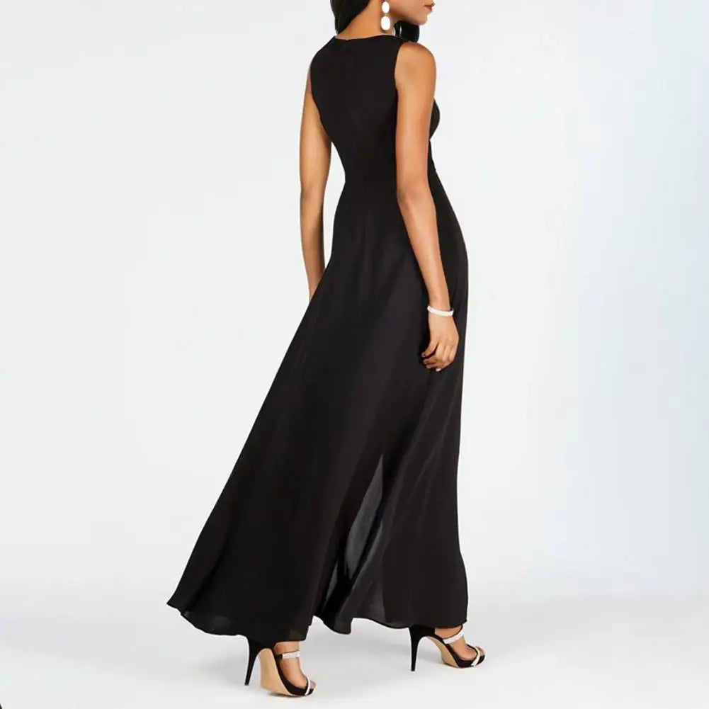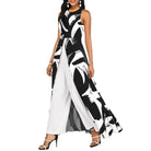 Cette combinaison longue bicolore associe modernité et raffinement pour un look inoubliable. Avec son haut noir fendu façon robe sur un pantalon blanc fluide, elle offre une silhouette élancée et sophistiquée.