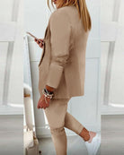 Cet ensemble blazer et pantalon style jogger est l'équilibre parfait entre chic et décontracté.