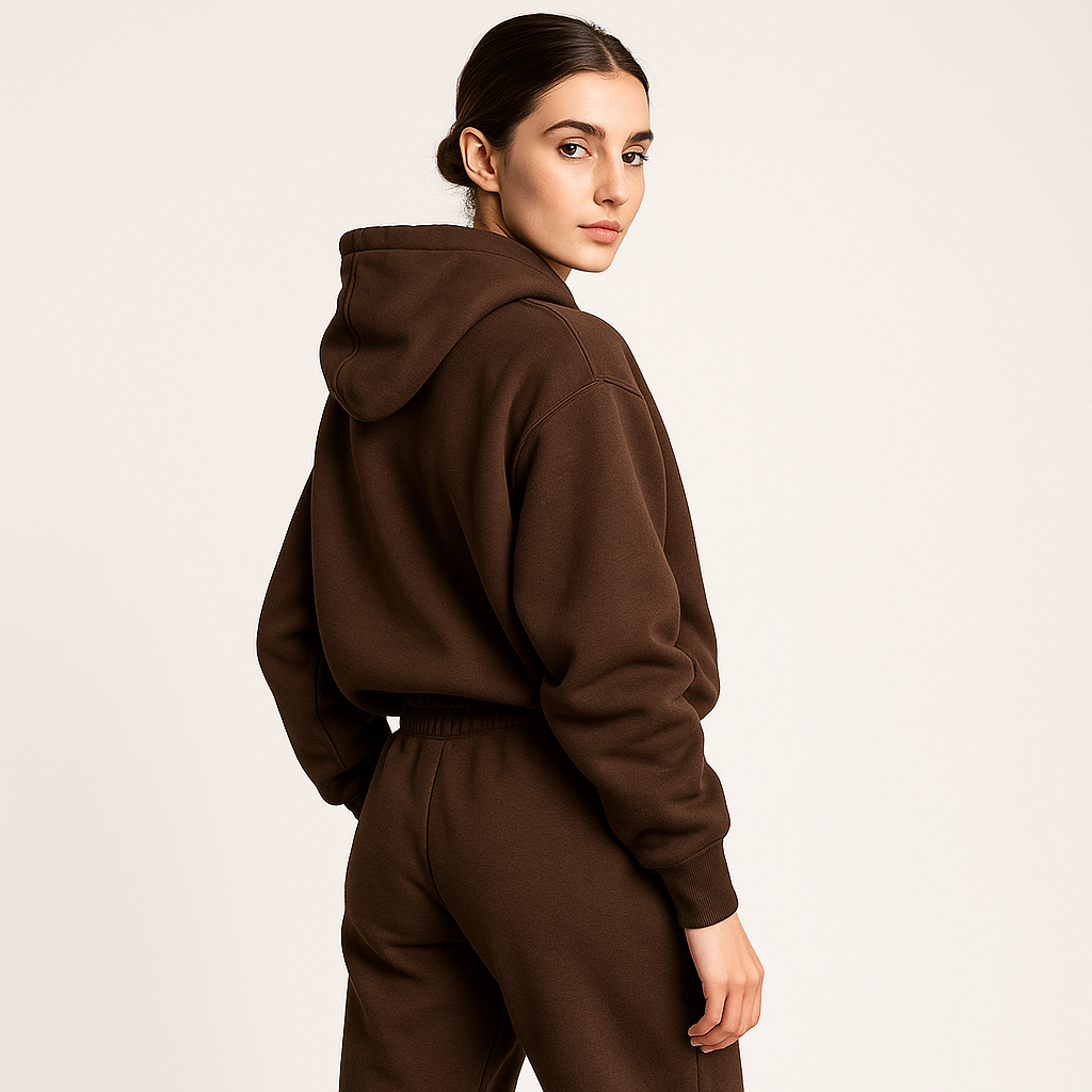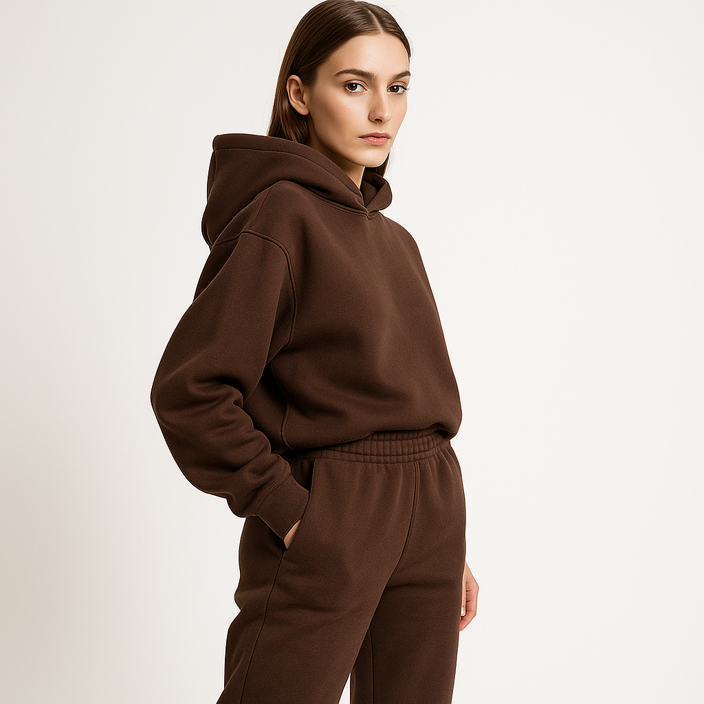 Découvrez cet ensemble deux pièces ultra cosy composé d’un sweat à capuche oversize et d’un pantalon de jogging à taille haute. Confectionné dans un tissu doux et chaud, il allie confort ultime et style urbain, idéal pour vos journées cocooning ou vos balades en ville.