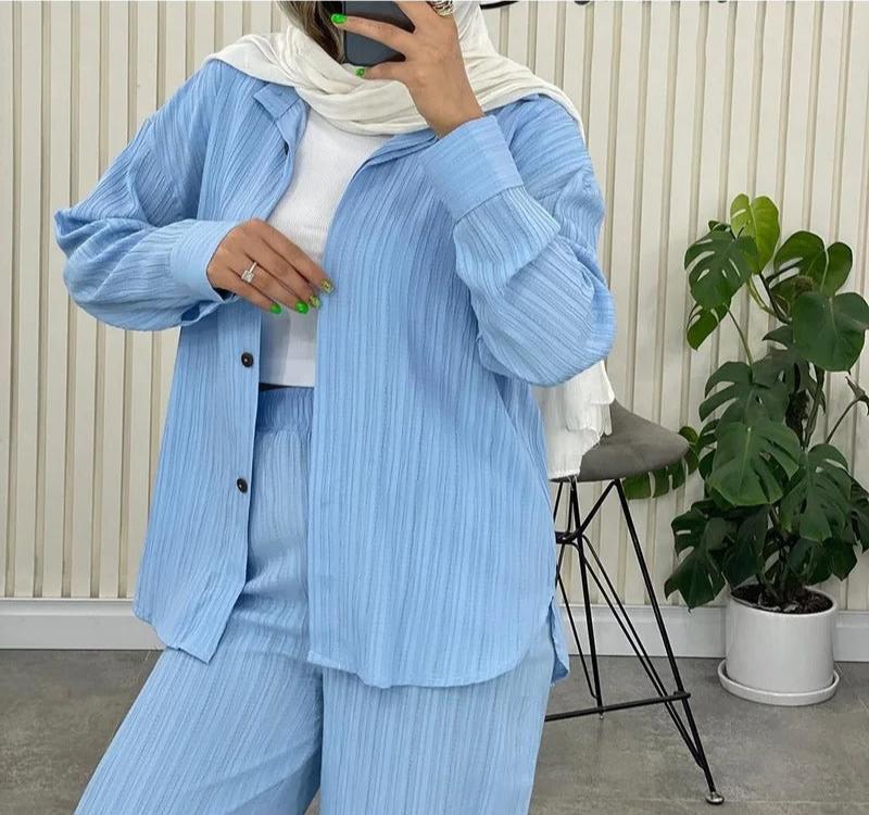 • Ensemble 2 pièces : Chemise boutonnée et pantalon large assorti