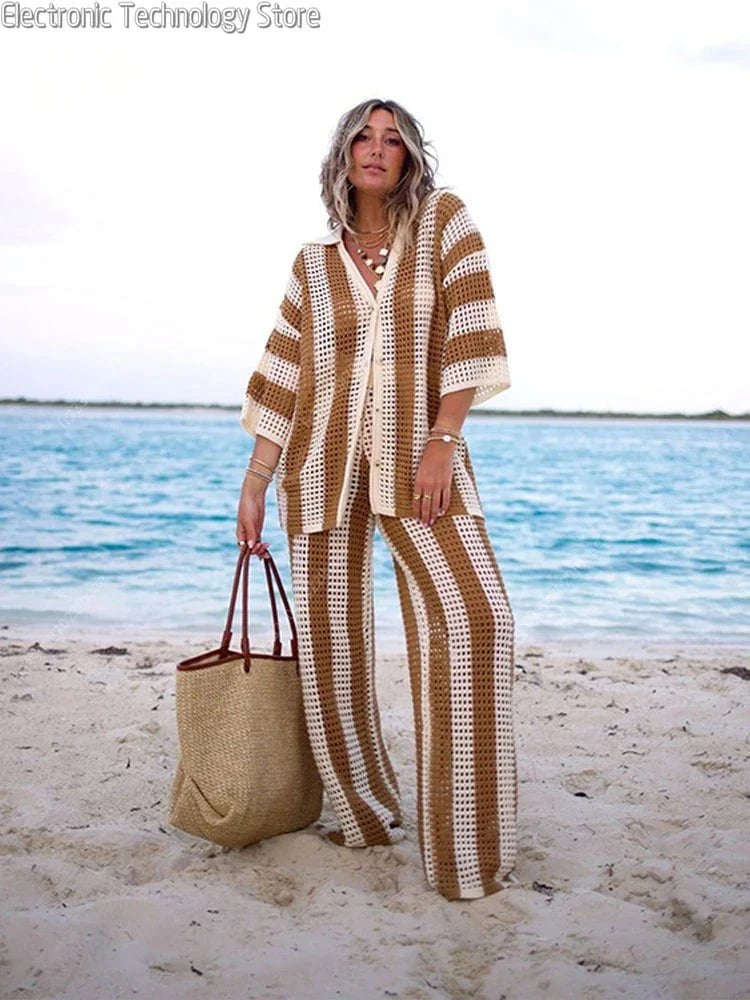 Ensemble Pantalon & Chemise Rayé | Élégance Bohème | Léger & Aéré