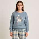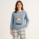 Cet ensemble pyjama bleu à motif chaton et pantalon à carreaux allie douceur, fantaisie et praticité pour des nuits sereines et stylées. Un vrai coup de cœur cocooning à adopter tout au long de l’année.
