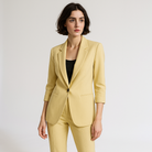 • Coupe féminine : Blazer cintré et pantalon à pinces pour une allure élégante