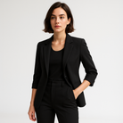 Ce tailleur deux pièces à manches trois-quarts est la solution parfaite pour les femmes modernes qui veulent allier élégance et confort. Avec sa coupe cintrée et son tissu léger, il est idéal pour le bureau, un rendez-vous ou un événement chic.