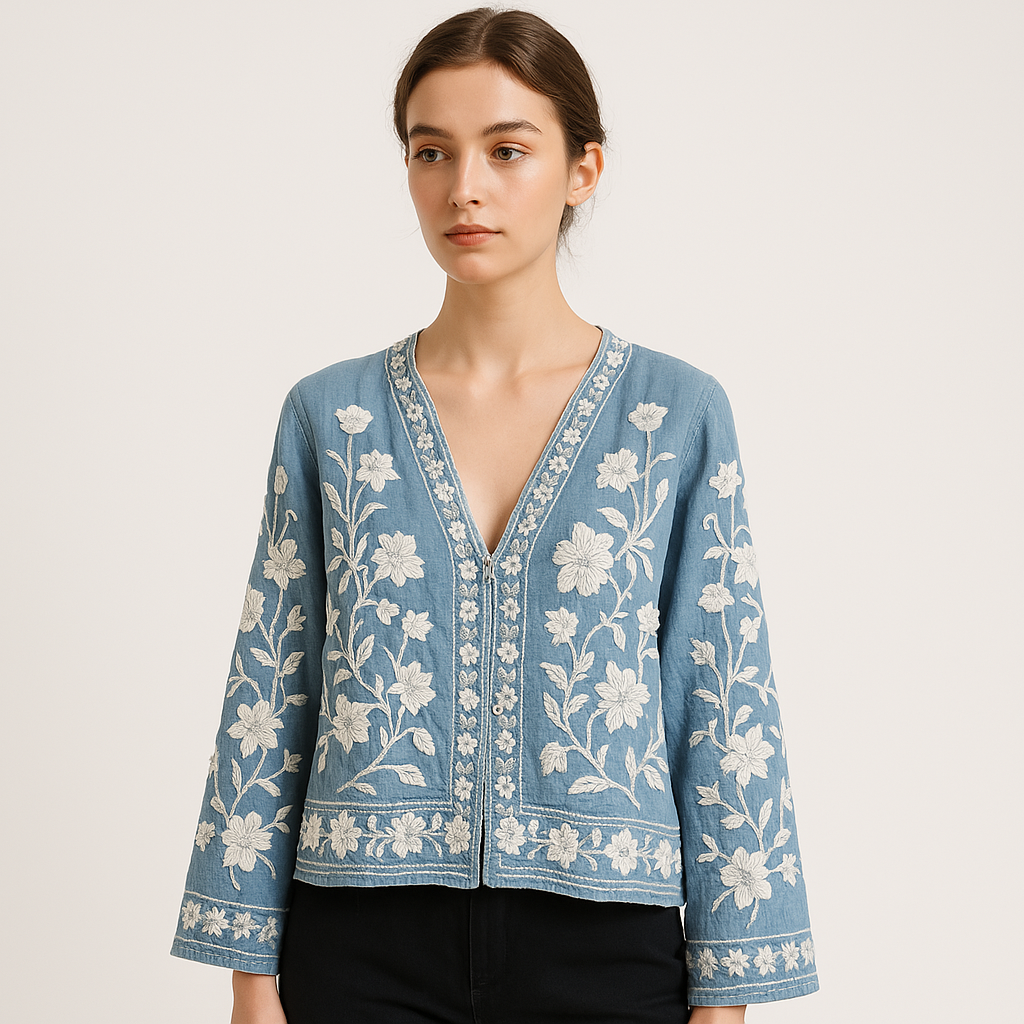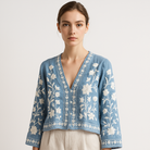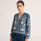 Blouse Brodée Bohème | Bleu Denim | Élégante et Décontractée