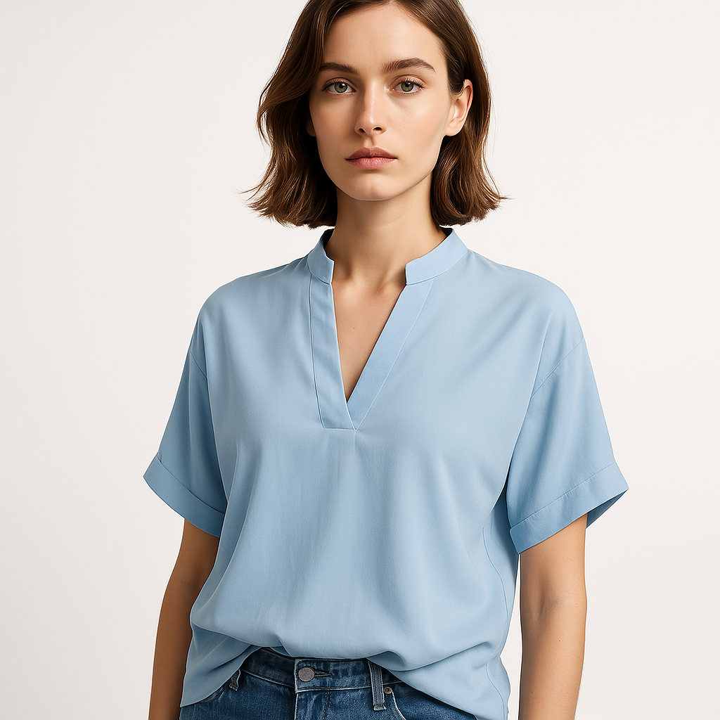 Blouse fluide col fendu | Manches courtes | Style minimaliste