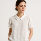 • Détails élégants : Col claudine classique et manches courtes froncées pour une allure soignée