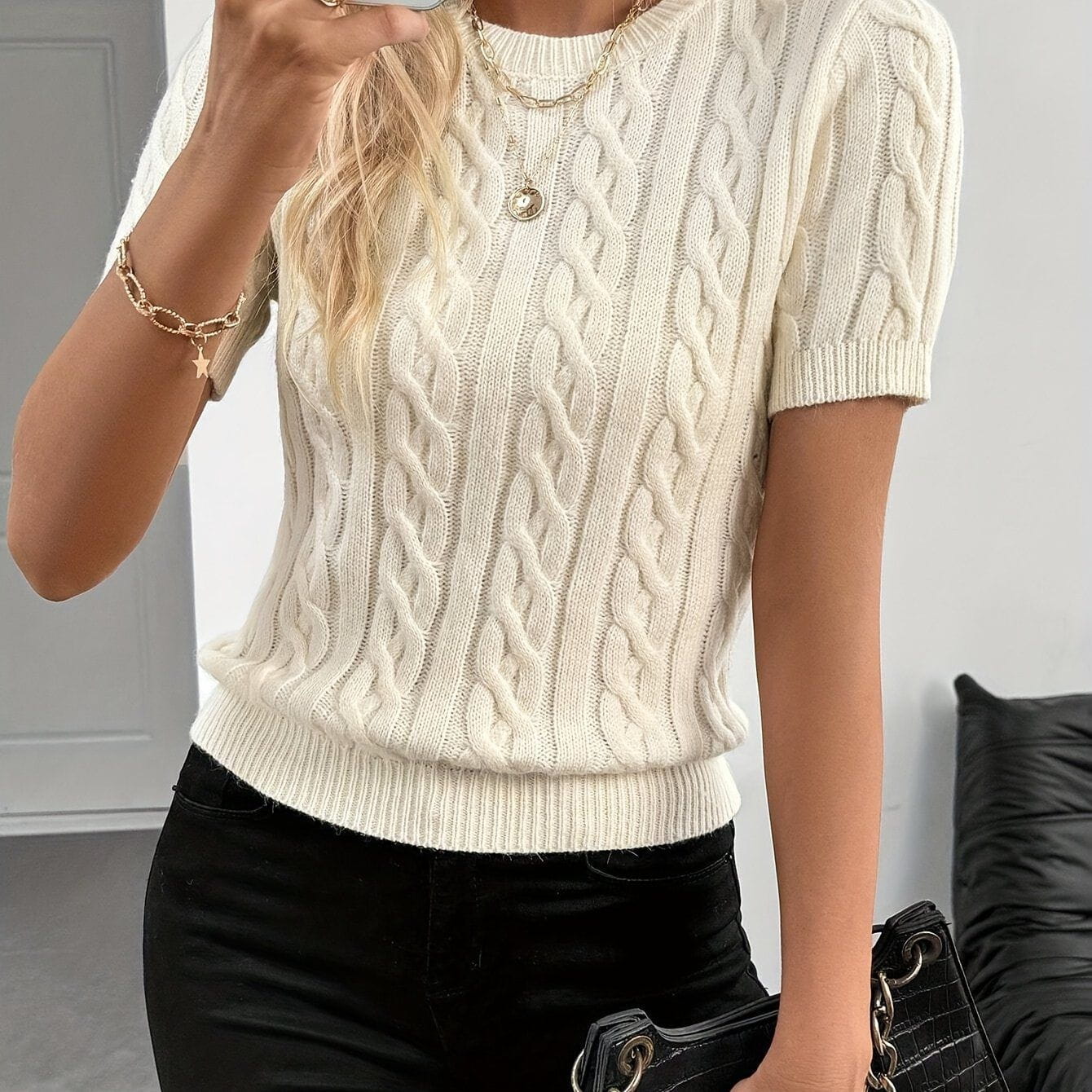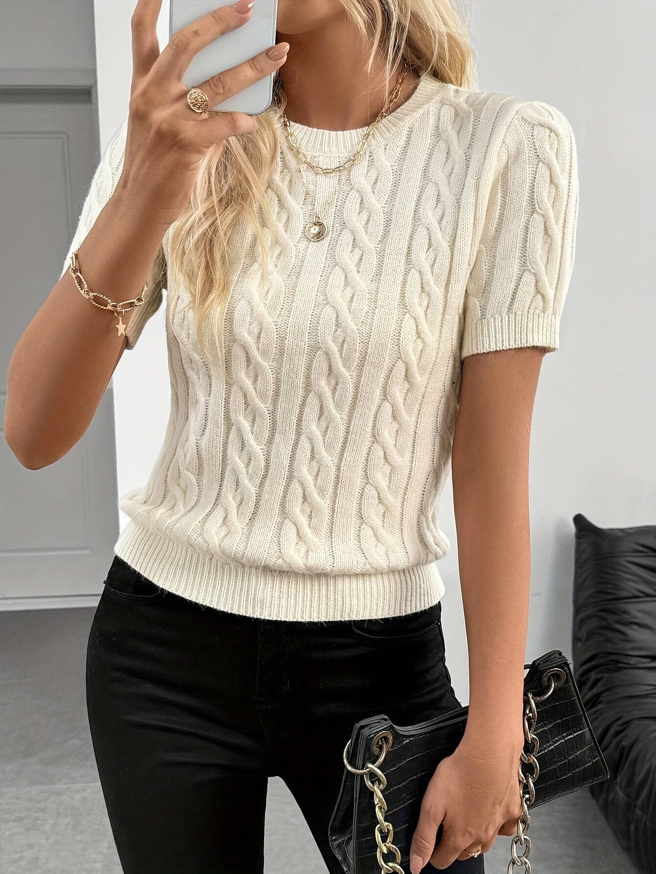Top Crème en Maille Torsadée | Manches Courtes | Chic & Léger