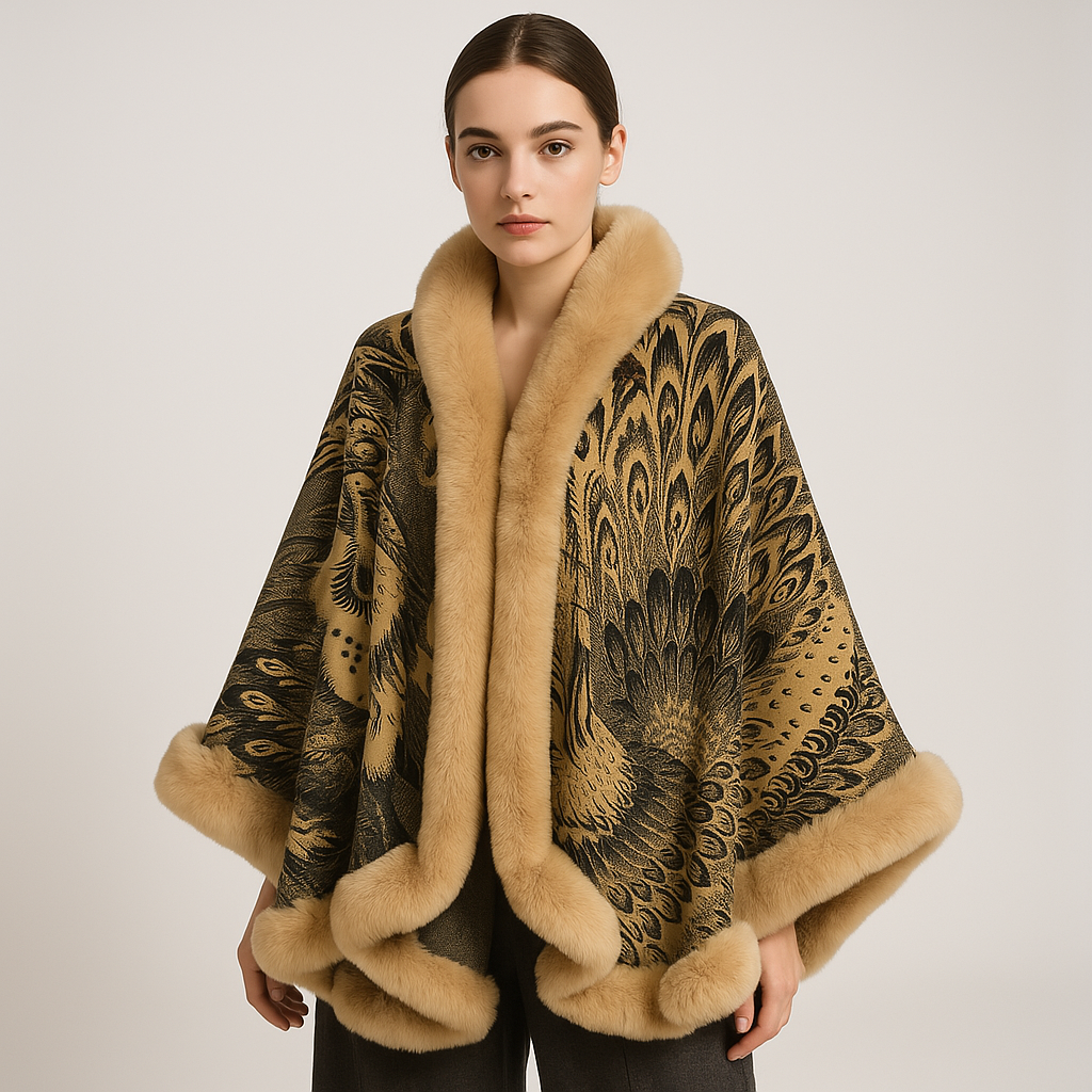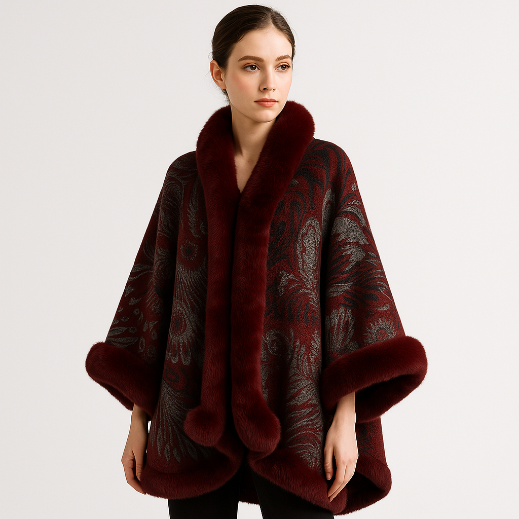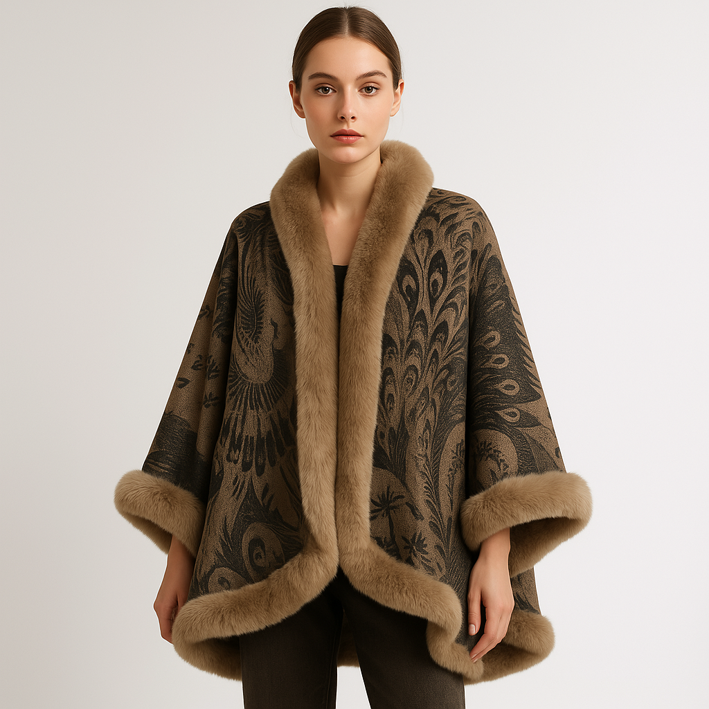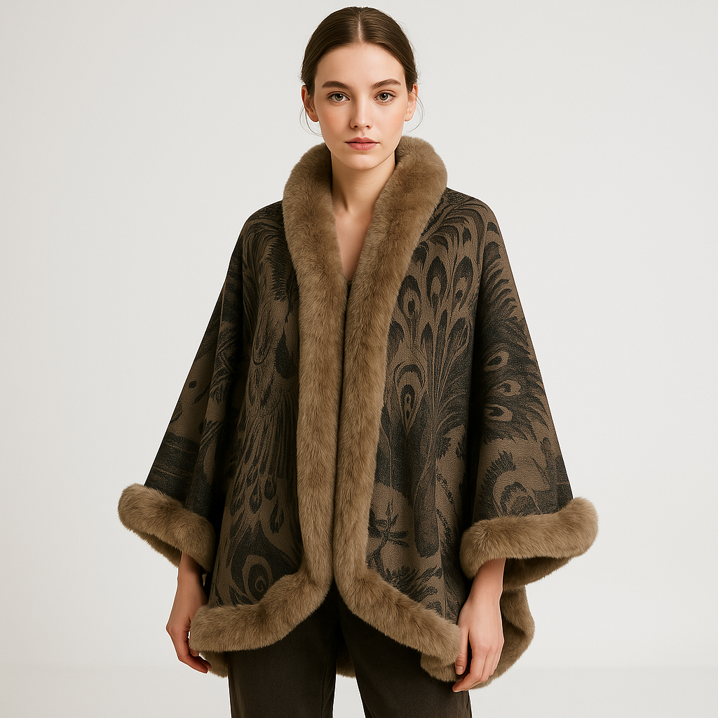 Cape Élégante à Motifs | Fausse Fourrure | Douceur et Raffinement