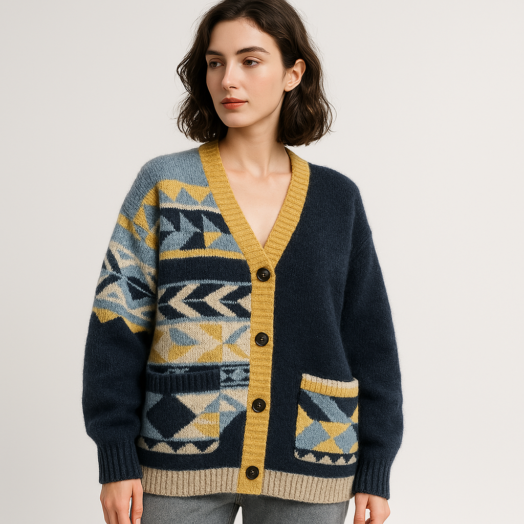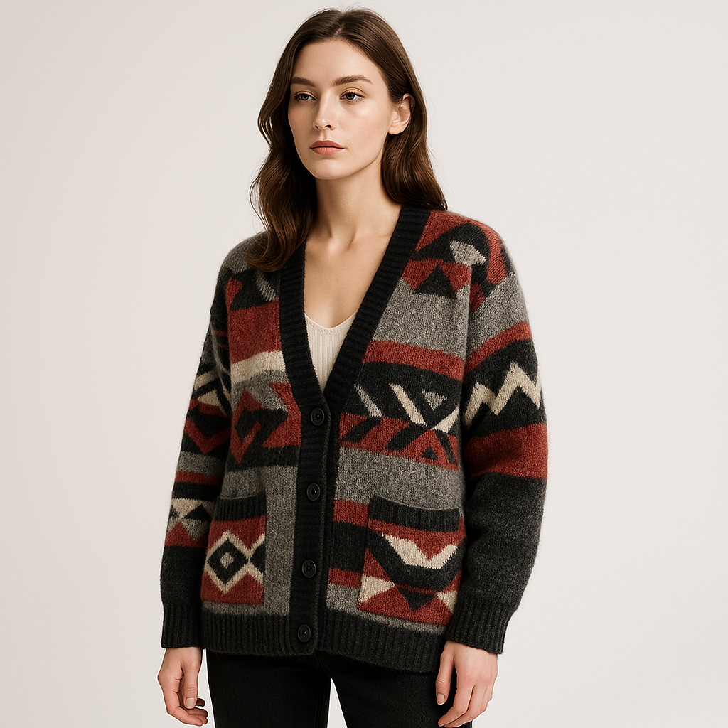 Cardigan Géométrique | Acrylique | Confort Oversize