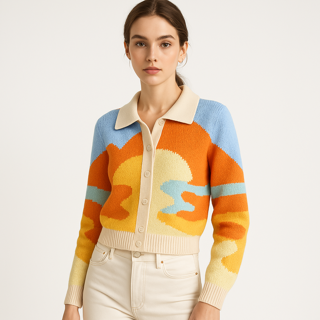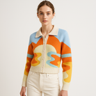 Cardigan Motif Abstrait | Orange | Rétro, Coloré et Audacieux