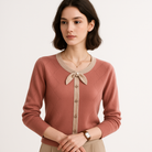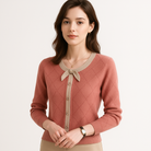 Cardigan Rose Élégant | Détails Contrastés & Nœud | Chic et Féminin
