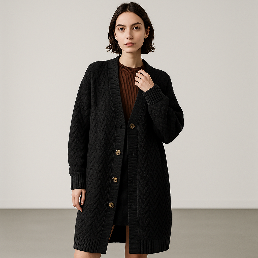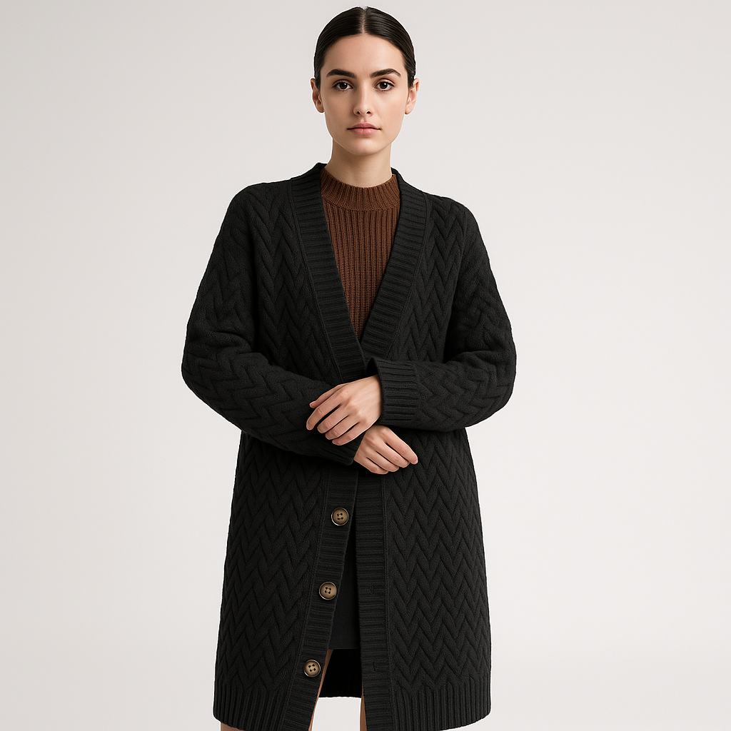 Gilet Long en Maille Torsadée | Boutonné | Style Cocooning