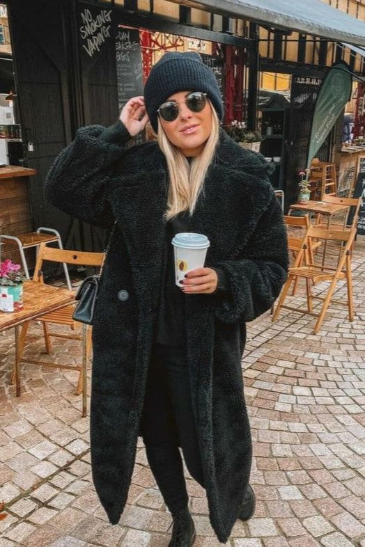Ce manteau long en effet mouton est parfait pour allier style et chaleur. Sa coupe ample et son tissu douillet en font une pièce idéale pour un look cosy et sophistiqué pendant la saison froide.