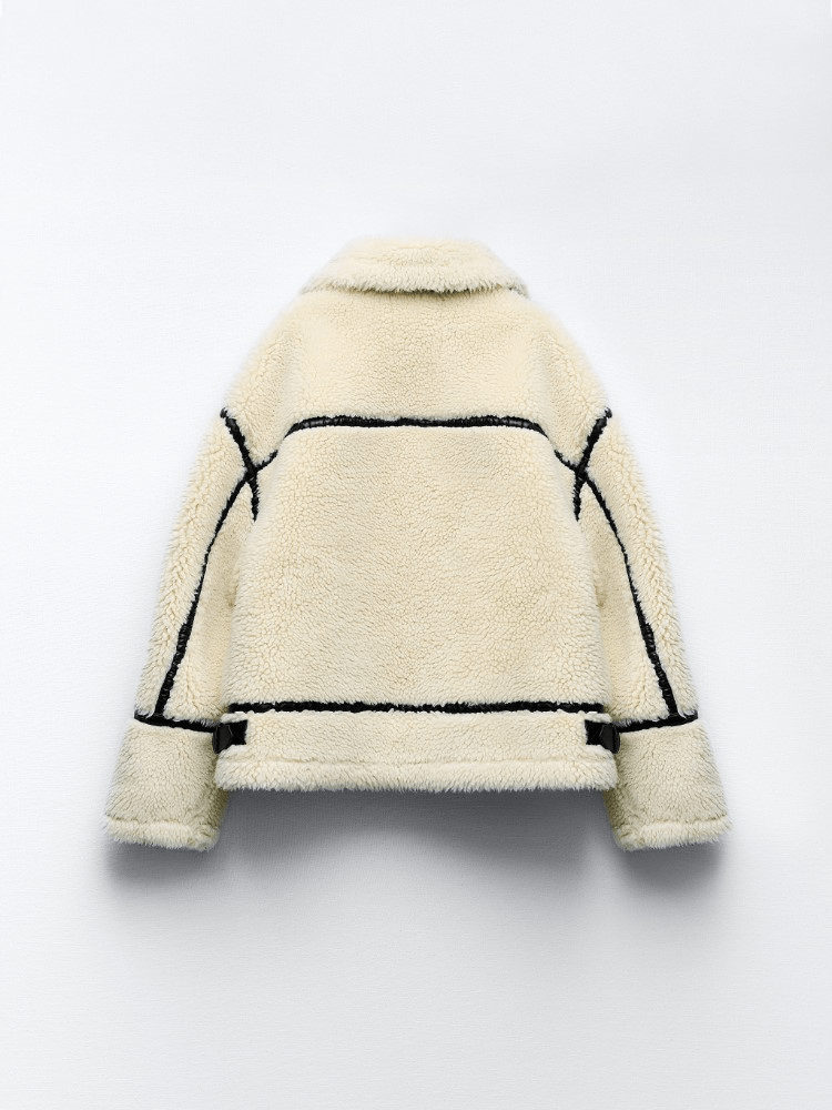 Cette veste aviateur effet mouton combine confort et tendance avec son design oversized et sa doublure ultra-douce. Son contraste de matières et ses détails zippés ajoutent une touche moderne et audacieuse à votre look, idéale pour un style casual chic.