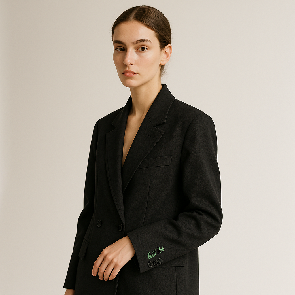 Cette veste blazer oversize offre une allure élégante tout en restant décontractée. Avec sa coupe droite, ses épaules structurées et ses détails brodés discrets sur la manche, elle rehausse instantanément n’importe quelle tenue.