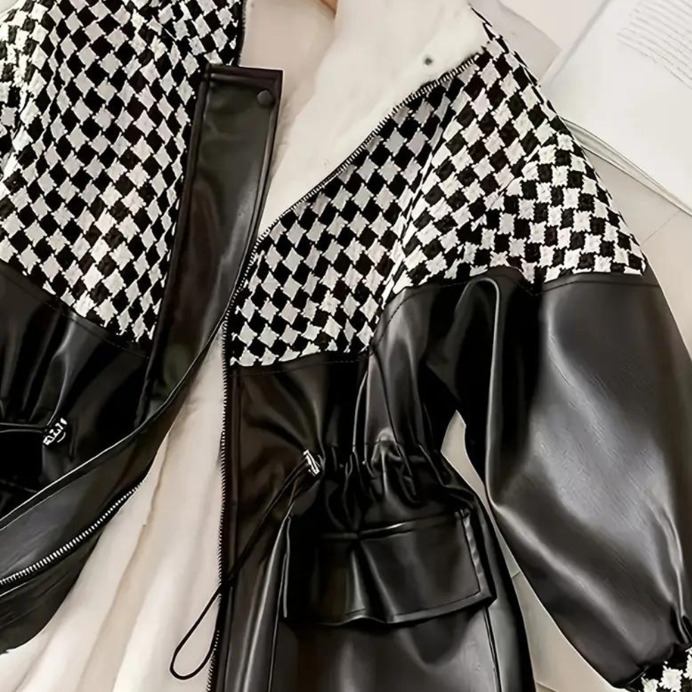 Veste en cuir effet mat | Motif damier | Chaude et stylée