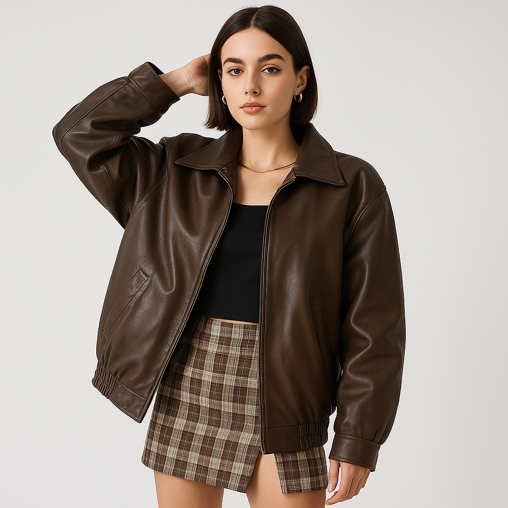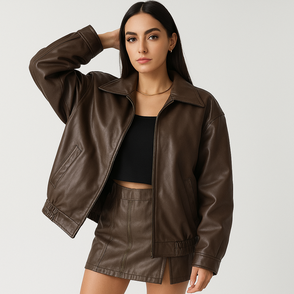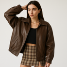 Veste Simili Cuir Oversize | Marron | Style Urbain & Intemporel
