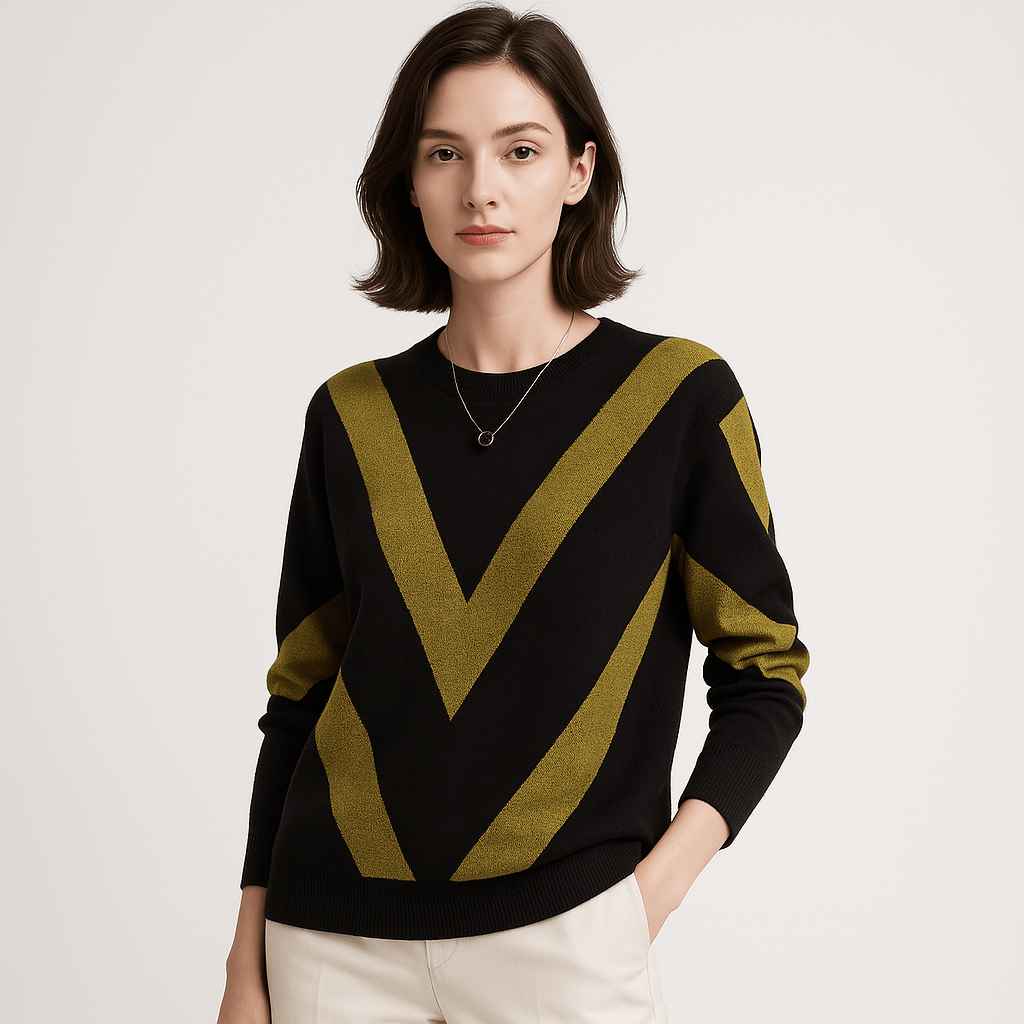 Pull Col Rond Motif V | Tricot Doux | Look Graphique Casual