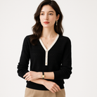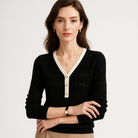 • Col V Élégant : Bord contrasté avec boutons décoratifs pour une touche sophistiquée
