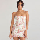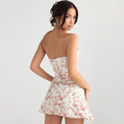 Cette robe bustier sans bretelles sublime la poitrine grâce à son corsage structurée et son imprimé floral délicat. La coupe près du corps met en valeur la taille tandis que le tissu légèrement extensible assure un confort optimal.