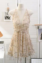 Cette mini-robe en tulle délicat se pare d’une broderie de perles et de sequins pour un effet lumineux à chaque mouvement. La taille empire et les volants superposés offrent une silhouette féminine et un tombé aérien.