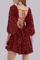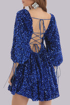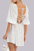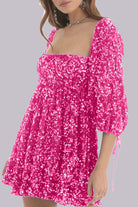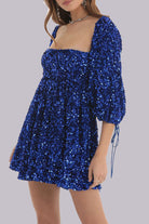 Cette robe courte en sequins capte la lumière à chaque mouvement grâce à son tissu scintillant. Le col carré et les manches ballon ajoutent une touche de romantisme moderne. La taille cintrée souligne délicatement la silhouette pour un rendu ultra-féminin.