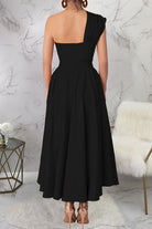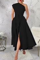 Cette robe asymétrique à une épaule marie élégance et audace pour un look unique. Son tissu fluide et sa fente centrale soulignent la silhouette avec légèreté.