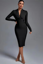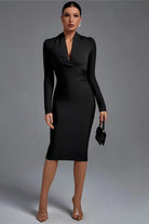 Cette robe blazer midi à manches longues allie élégance minimaliste et féminité affirmée grâce à sa coupe tailleur ajustée. Sa matière extensible offre un confort optimal tout en maintenant une silhouette impeccable.