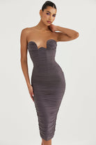 Robe bustier froncée mi-longue