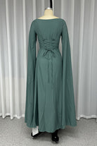 ChicSelect présente cette robe longue drapée, alliant majesté et légèreté pour un port de tête royal. Son drapé asymétrique et ses manches cape fluides créent un jeu de volumes sophistiqué et aérien.