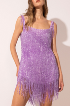 Cette robe courte ornée de franges scintillantes est conçue pour briller sous les lumières et suivre chacun de vos mouvements. Sa coupe fluide et ses fines bretelles créent une silhouette dansante et glamour, parfaite pour célébrer.