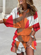 Cette robe courte à volants combine un imprimé floral audacieux et une coupe flatteuse pour un look à la fois joyeux et tendance. Son tissu léger et sa taille élastique assurent un confort parfait tout au long de la journée.