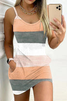 Cette robe courte sans manches associe un imprimé rayé graphique à une coupe décontractée et féminine. Les poches latérales et les fines bretelles offrent praticité et confort tout au long de la journée.