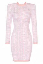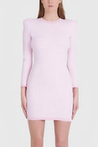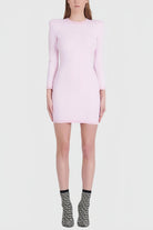 Cette robe ajustée à manches longues séduit par sa simplicité moderne et ses épaules marquées qui structurent la silhouette. Le tissu légèrement texturé et la coupe droite créent un look contemporain et sophistiqué.