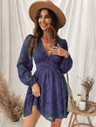 Cette robe courte à manches longues transparentes et tissu texturé offre une silhouette élégante et féminine. Sa coupe cintrée à la taille et son jupon fluide créent un mouvement naturel et raffiné.