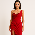 Robe de Soirée Asymétrique | Sequins & Drapé | Élégance Nocturne