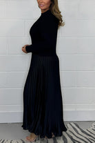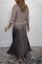 Effet deux pièces : Haut en maille et jupe plissée pour une allure structurée et tendance