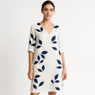 Cette robe en lin à imprimé feuillage bleu marine est une pièce incontournable pour celles qui recherchent à la fois confort, naturel et une touche bohème. Sa coupe ample, son col en V flatteur et ses manches retroussables en font une alliée parfaite pour les journées ensoleillées.