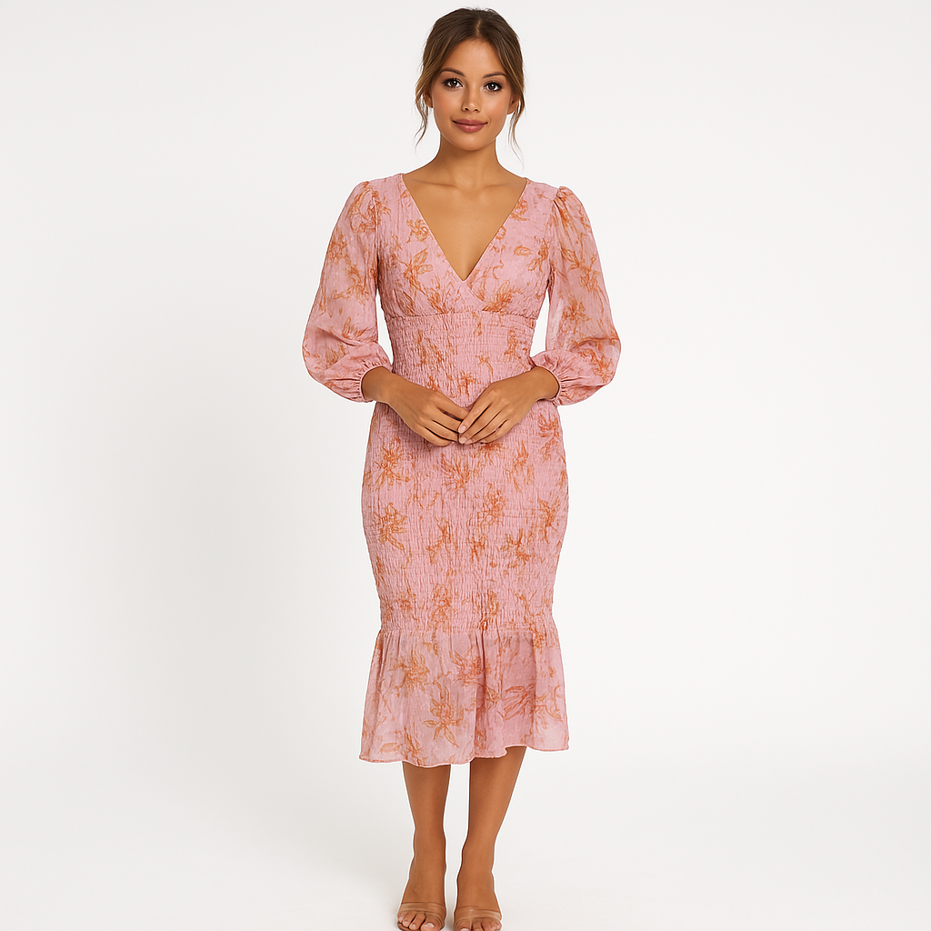 Robe Fleurie Midi | Bohème Chic | Volants & Manches Bouffantes