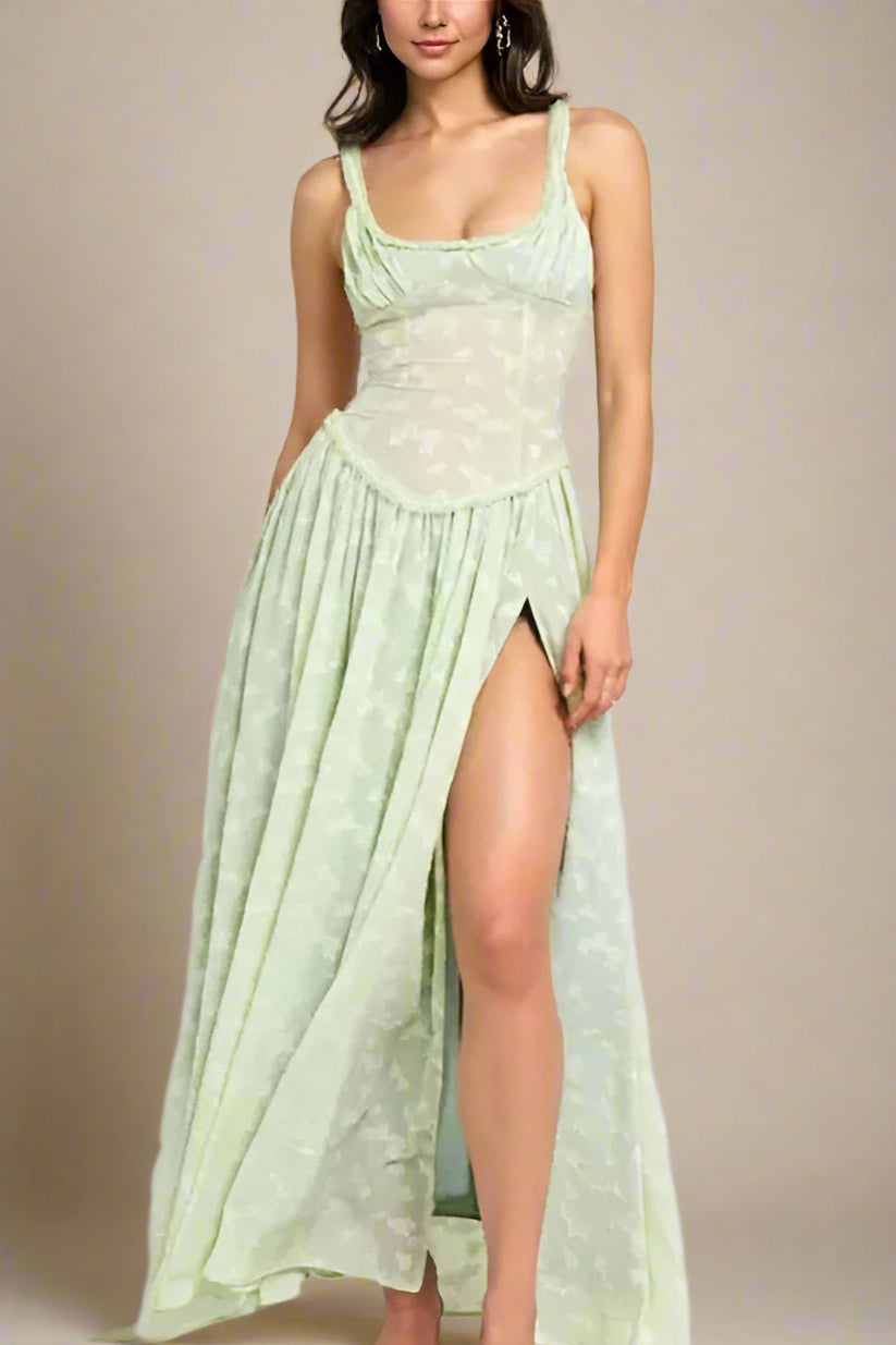 Cette robe longue à fines bretelles et fente latérale marquée incarne l’élégance naturelle avec sa coupe flatteuse et son motif discret. Son tissu léger et son tombé fluide en font une pièce idéale pour les journées ensoleillées ou les événements raffinés en plein air.