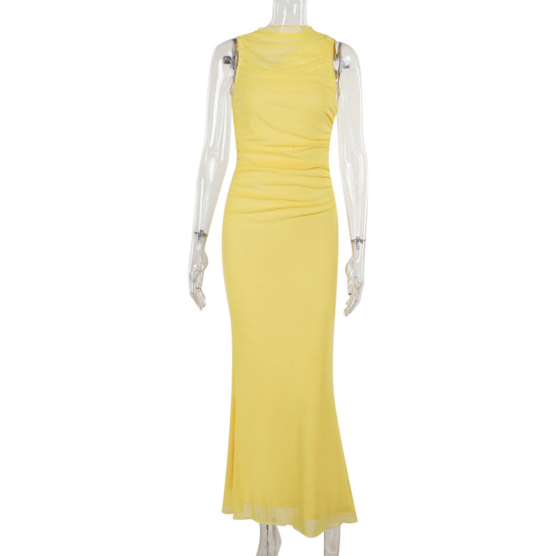 Cette robe longue sans manches à col montant allie fraîcheur et sophistication dans une coupe ajustée ultra flatteuse. Sa teinte éclatante et sa matière légère en font un choix parfait pour les journées ensoleillées ou les soirées sous les palmiers.