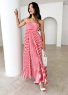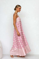 Cette robe longue à rayures verticales et horizontales séduit par son allure à la fois moderne et décontractée. Avec ses fines bretelles et sa coupe ample, elle offre une liberté de mouvement optimale tout en restant chic.