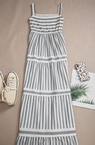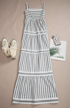 Cette robe longue associe un voile de coton léger à une coupe évasée pour un tombé aérien. Les fines bretelles et l’encolure carrée offrent un maintien délicat tout en sublimant le port de tête. Les rayures verticales structurent la silhouette pour un look contemporain et raffiné.