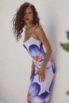 Cette robe à bretelles fines séduit par son imprimé floral oversize et sa coupe près du corps qui allonge la silhouette. Son tissu léger épouse les formes avec fluidité tout en restant confortable.