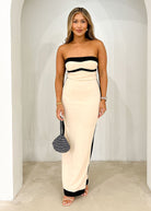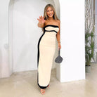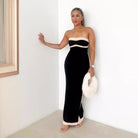 Cette robe longue bustier joue sur les contrastes noir et blanc pour une silhouette moderne et structurée. Sa coupe ajustée et son tissu fluide assurent confort et distinction tout au long de la soirée.