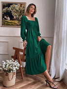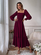 Robe longue carrée à manches ballon