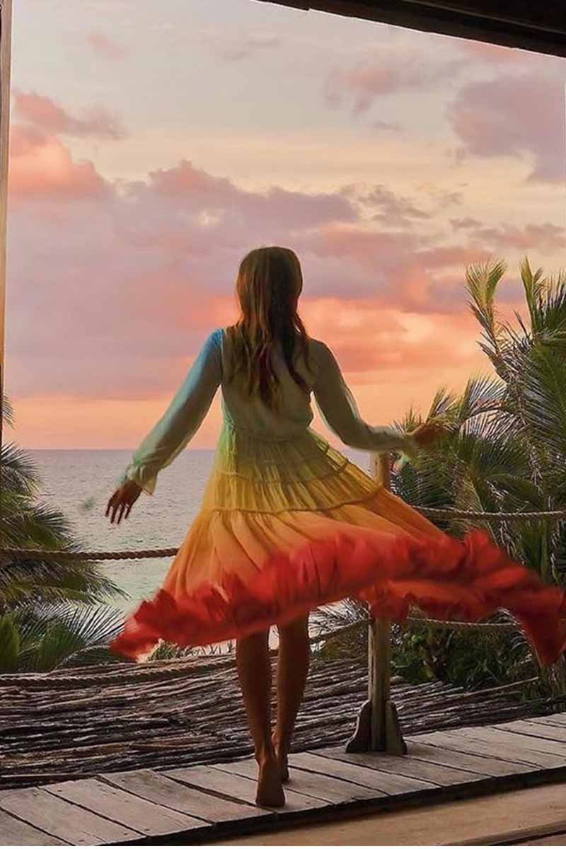 Envie d’une robe longue qui évoque un coucher de soleil envoûtant ?