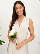 Cette robe longue incarne l’élégance intemporelle avec son tissu fluide et son encolure flatteuse. Sa coupe sans manches et son drapé délicat en font une pièce parfaite pour les occasions spéciales.